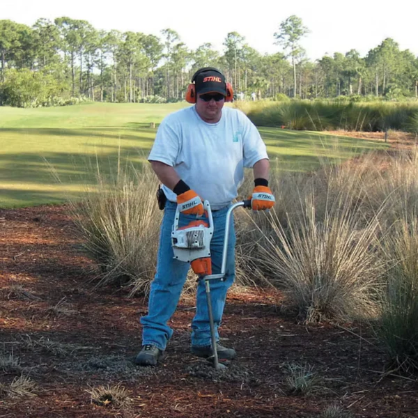 For large landscaping projects like mass plantings, ditch the shovel and pick up the BT 45 earth auger from STIHL. Its lightweight gasoline-powered engine goes where electric models don’t, so you can dig in remote areas. Ideal for mass flower plantings or deep root fertilization, this small, compact landscaping auger helps you work large amounts of soil more quickly with less fatigue. A primer bulb and throttle lock make the auger easy to start, while an anti-vibration system and ergonomic design make it easy to operate.