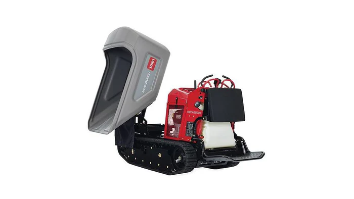 - Auto-Return Dump feature ensures the tub automatically returns to resting position so the operator can focus on retrieving the next load of materials.